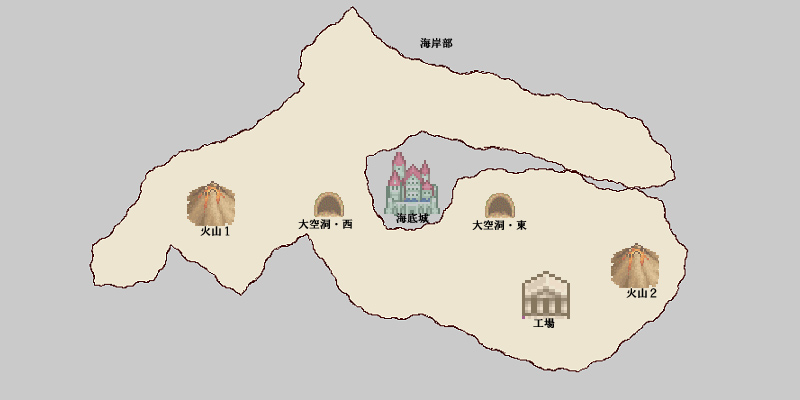 海岸部2 新たに浮かび上がった島の海岸部。 出現モンスター:なし |